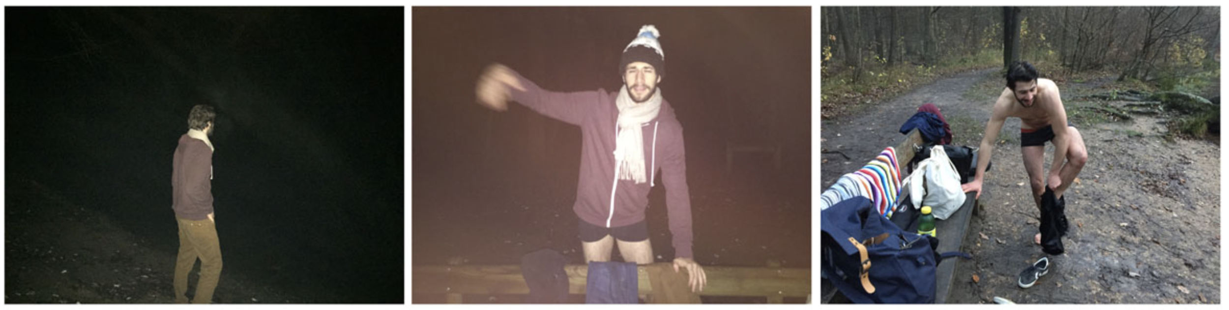 This time, it’s during a walk in the middle of the forest, that we came across something that led us to a new creative project. A lost pond, a few ducks and grandmas feeding them with bread. That’s all Miss Big Nostrils needed to picture me in the middle of it. The idea was simple. Trudging in the pond, naked (again) in front of her camera’s watchful eye. Fate led us to this watering place in autumn, and after thinking about it and taking the time to go for it, it was already December, « Yay, Hello freezing temperatures! ». Dawn’s light and morning fog should bring more inspiration to the atmosphere. So let’s set the alarm clock at 5am, though it’s seems unbearable for the unemployed person that I am. So as we noticed when we arrived, the mist on the lake in the morning, is a big joke!