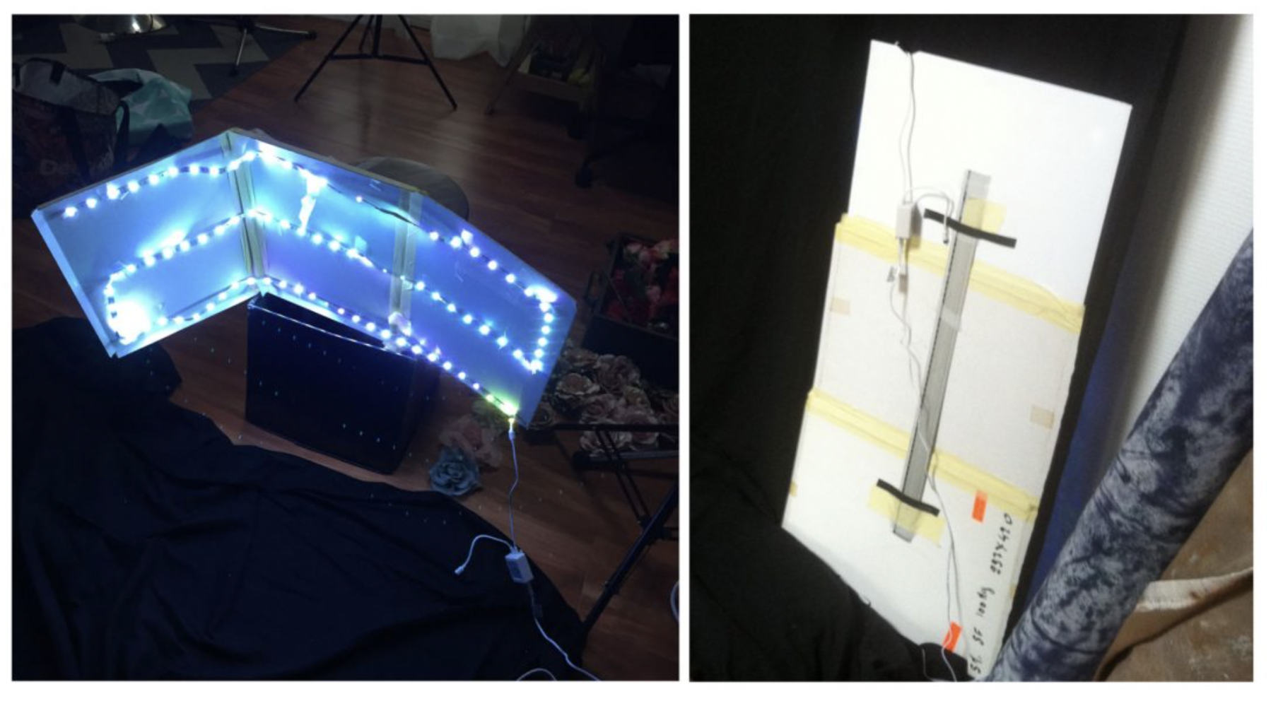 That was before the radio I used to trigger my Flash decided to stop working, just when everything else was ready ARGHH! I think I didn’t even say anything to the girls and that my mind worked at 300 miles to find a solution: I pulled out a garland of LEDs, I had used during the month, a piece of cardboard from a suitcase, I taped 2 pieces of A3 cardboards together, LED lights on the cardboards and we played with that all afternoon! I even taped a ruler on the back of the cardboard so Camille would have a handle to position the lights really close to Clara and more easily while I was taking pictures.